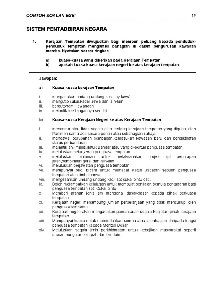 Contoh Soalan Apa Itu Kerajaan Tempatan